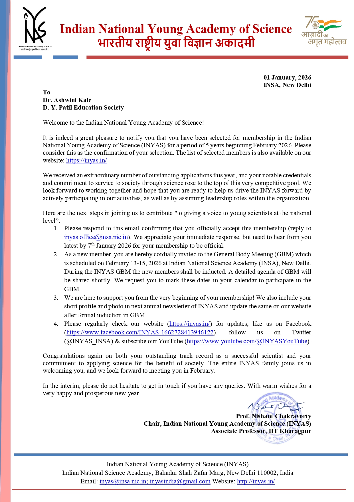 D.Y. Patil Deemed University Professors Honored by Maharashtra Academy of Sciences (MAS) in 2024 - We are proud to announce that three esteemed professors from D.Y. Patil Deemed University have been selected as Young Associates and Fellows by the Maharashtra Academy of Sciences (MAS) for the year 2024. Dr. Arpita Pandey-Tiwari, Associate Professor, has been Read More ...